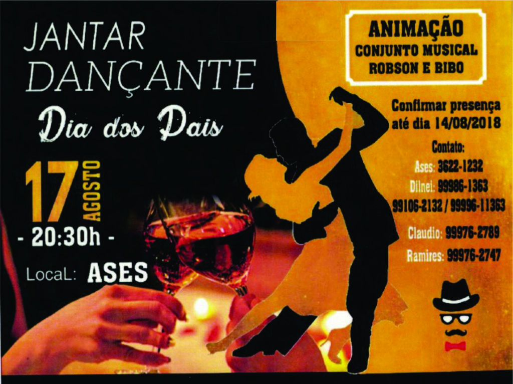 A AAPRE convida seus associados da região de Tubarão para participarem do Jantar Dançante comemorativo ao Dia dos Pais, que será realizado no dia 17 de agosto, a partir das 20:30h, na ASES.